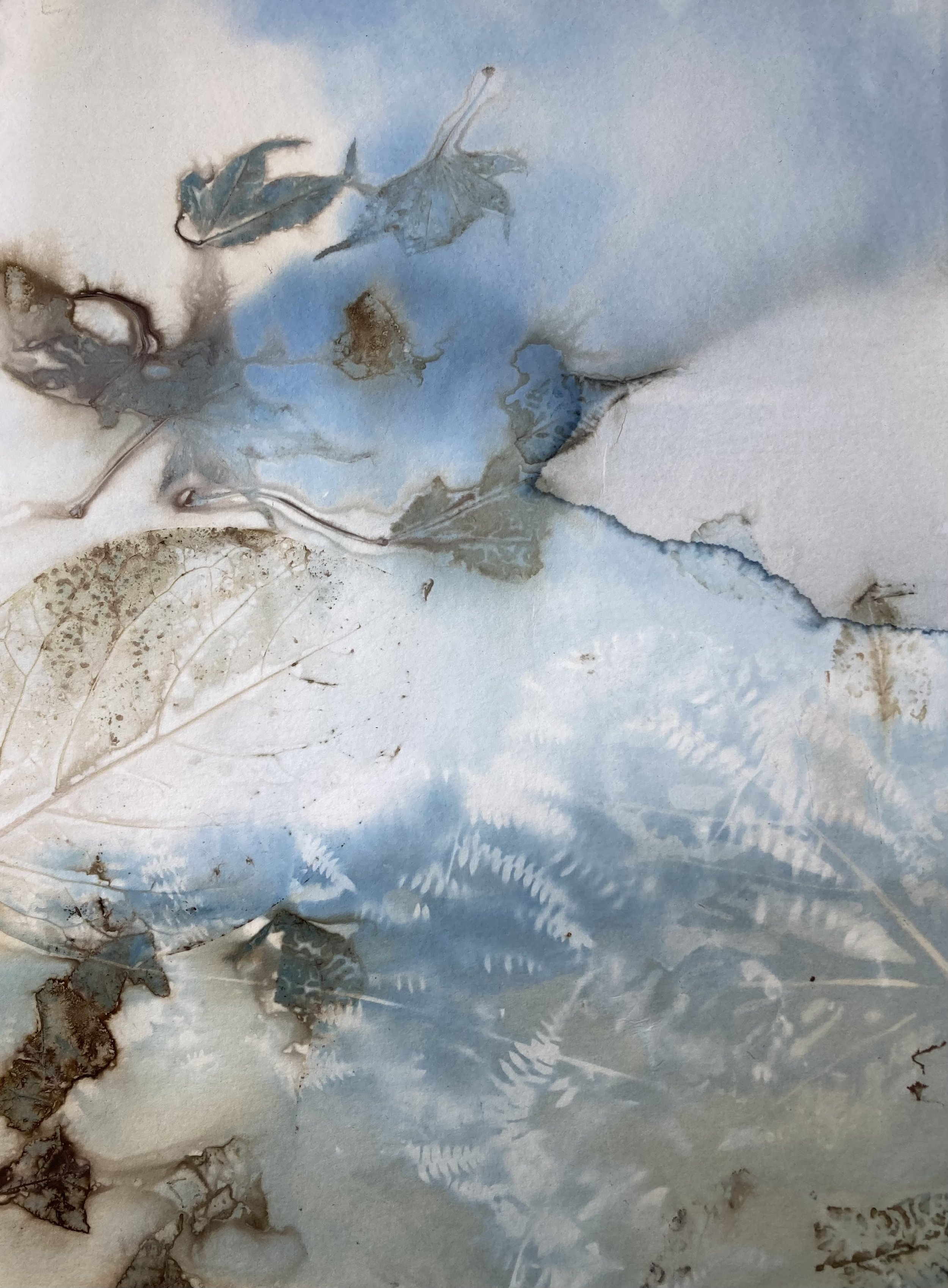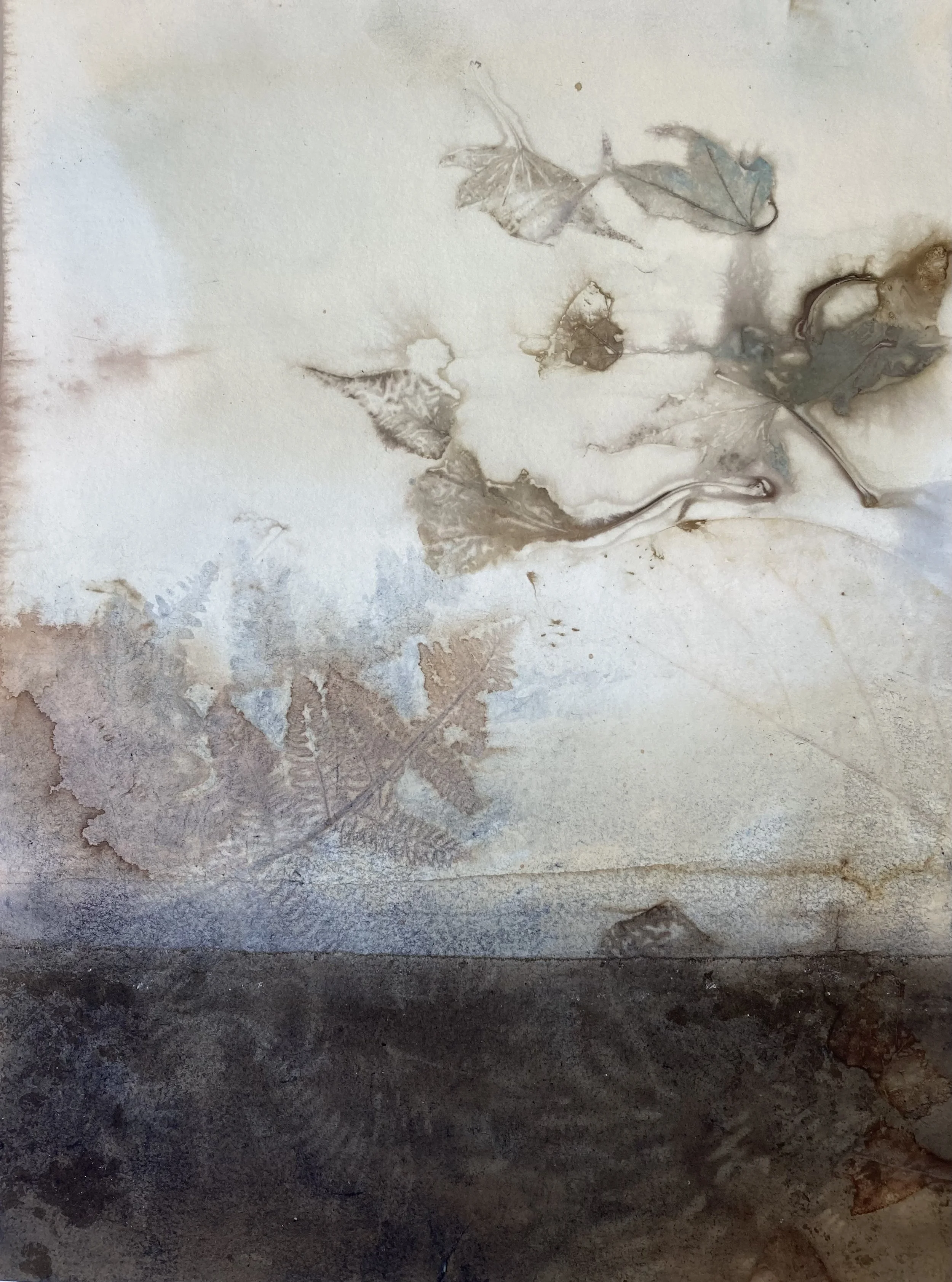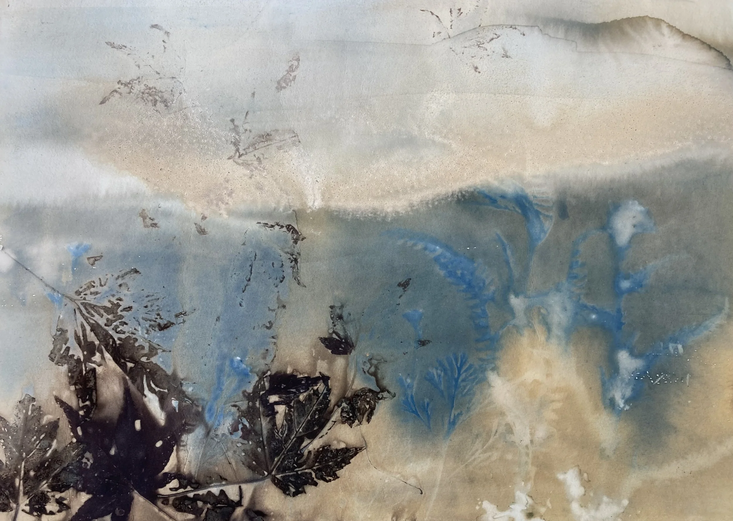 Grounded in collaboration with the materiality of the Earth, I nurture a creative practice that is rooted in a direct and ongoing relationship with local botanicals. Co-creating natural dyes, plant-based inks and, most recently, the cyanotype process — one of the earliest forms of cameraless photography — these works emerge from a dialogue between land, light, weather, and time.